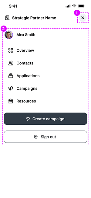 Once the new UI was established for the overall site, I then moved to the next customer pain point - creating campaigns. Starting with the mobile experience, I set out to accomplish this action in as few interaction points as possible. Once the user chooses "Create campaign" from the menu flyout, they are presented with a roll-up where they can complete the form with pre-built assets to create their campaign. Users are able to choose between a variety of campaigns types, ranging from landing pages to social media posts.
