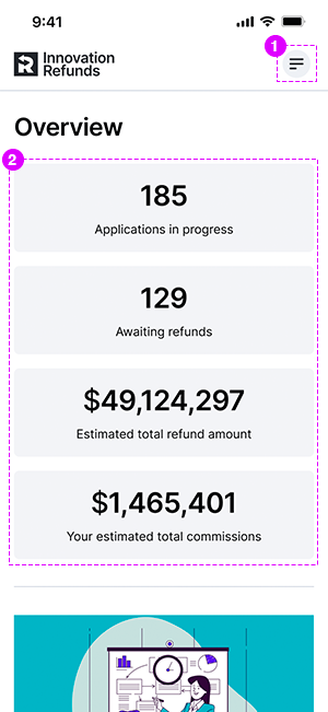 As an affiliate customer, I want to see a high level view of key performance metrics so that I can quickly monitor overall success.
