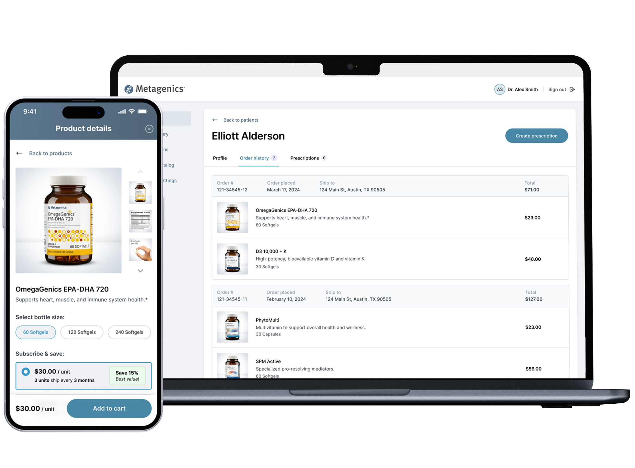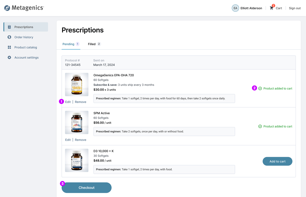 Metagenics needed a new approach to facilitate physician-to-patient prescriptions for nutritional supplements. The existing B2B2C ordering platform allowed patients to purchase products from their physician, but lacked functionality for physicians to initiate protocols for their patients.