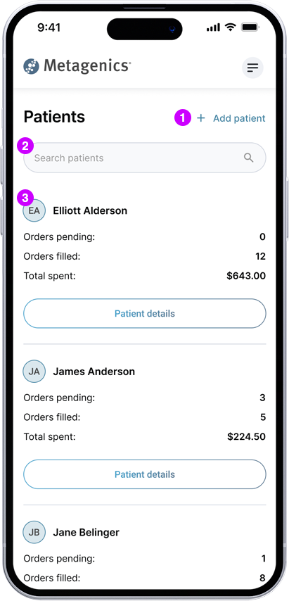 3Physician can click "Add patient" to add new patients.